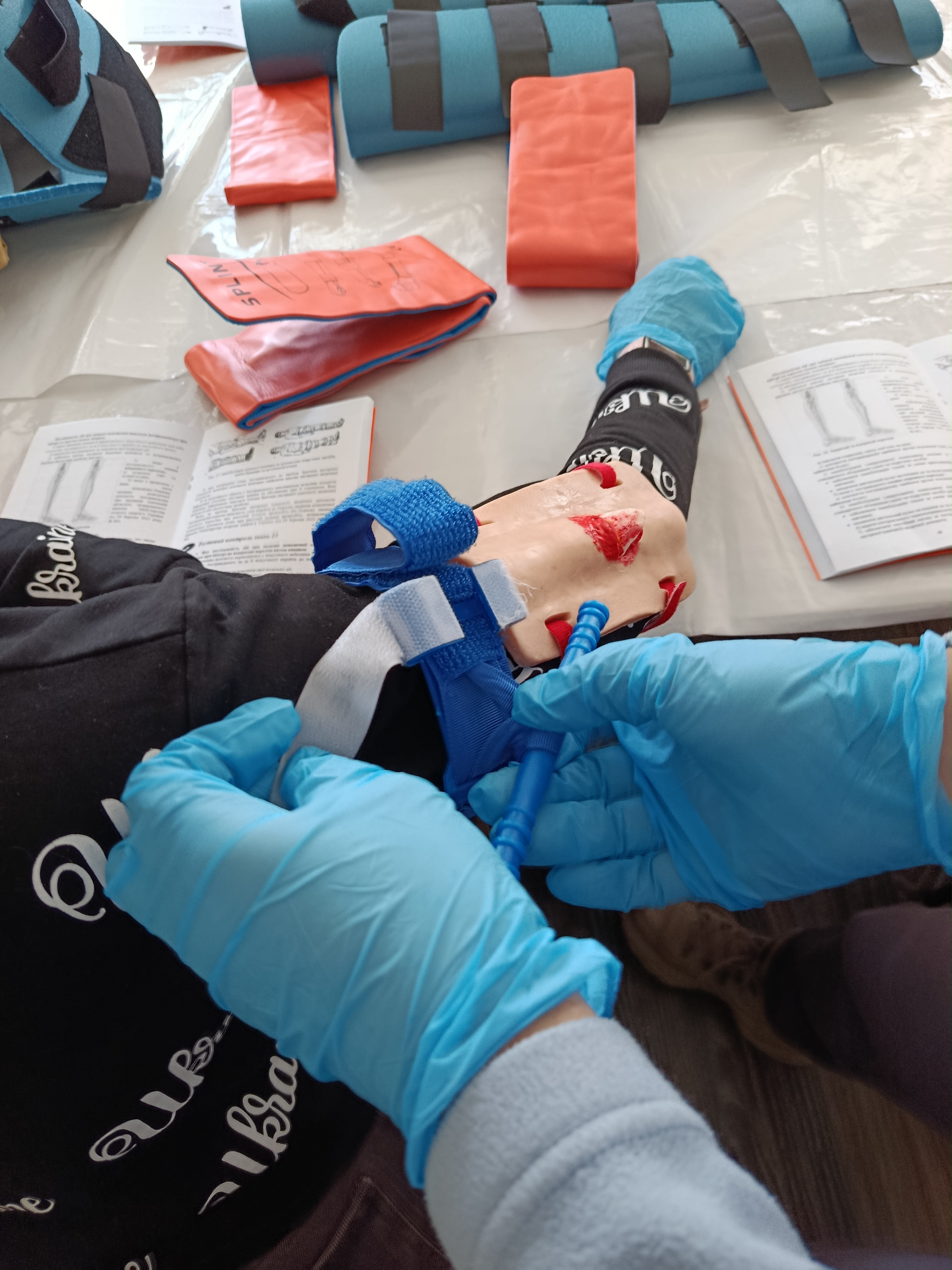 Основна увага була приділена наданню допомоги при важких механічних ураженнях: підозрі на переломи кінцівок, травматичних ампутаціях, а також травмах грудної клітки та черевної порожнини. Слухачі на практиці відпрацьовували правила іммобілізації, накладання тиснучих пов’язок та турнікетів, а також специфіку допомоги при проникних пораненнях тулуба. Важливою складовою кожного алгоритму став психологічний супровід — вміння фахівця зберігати спокій, встановлювати контакт із потерпілим та надавати першу психологічну допомогу безпосередньо під час виконання медичних маніпуляцій.