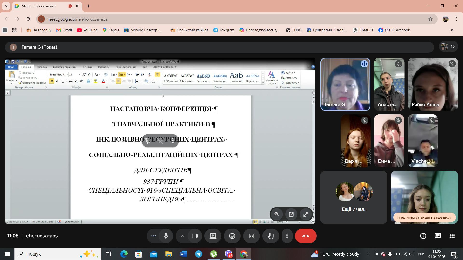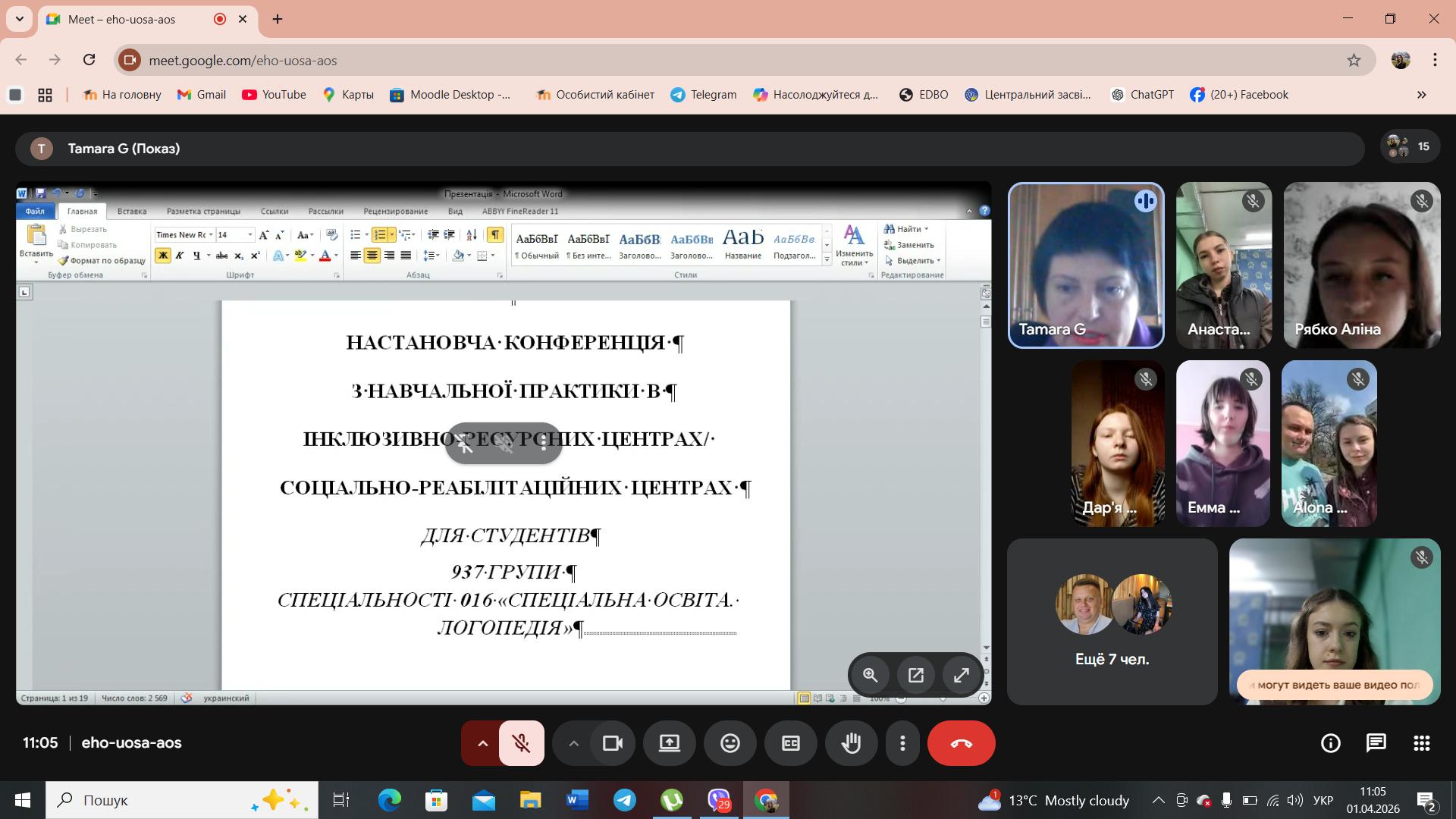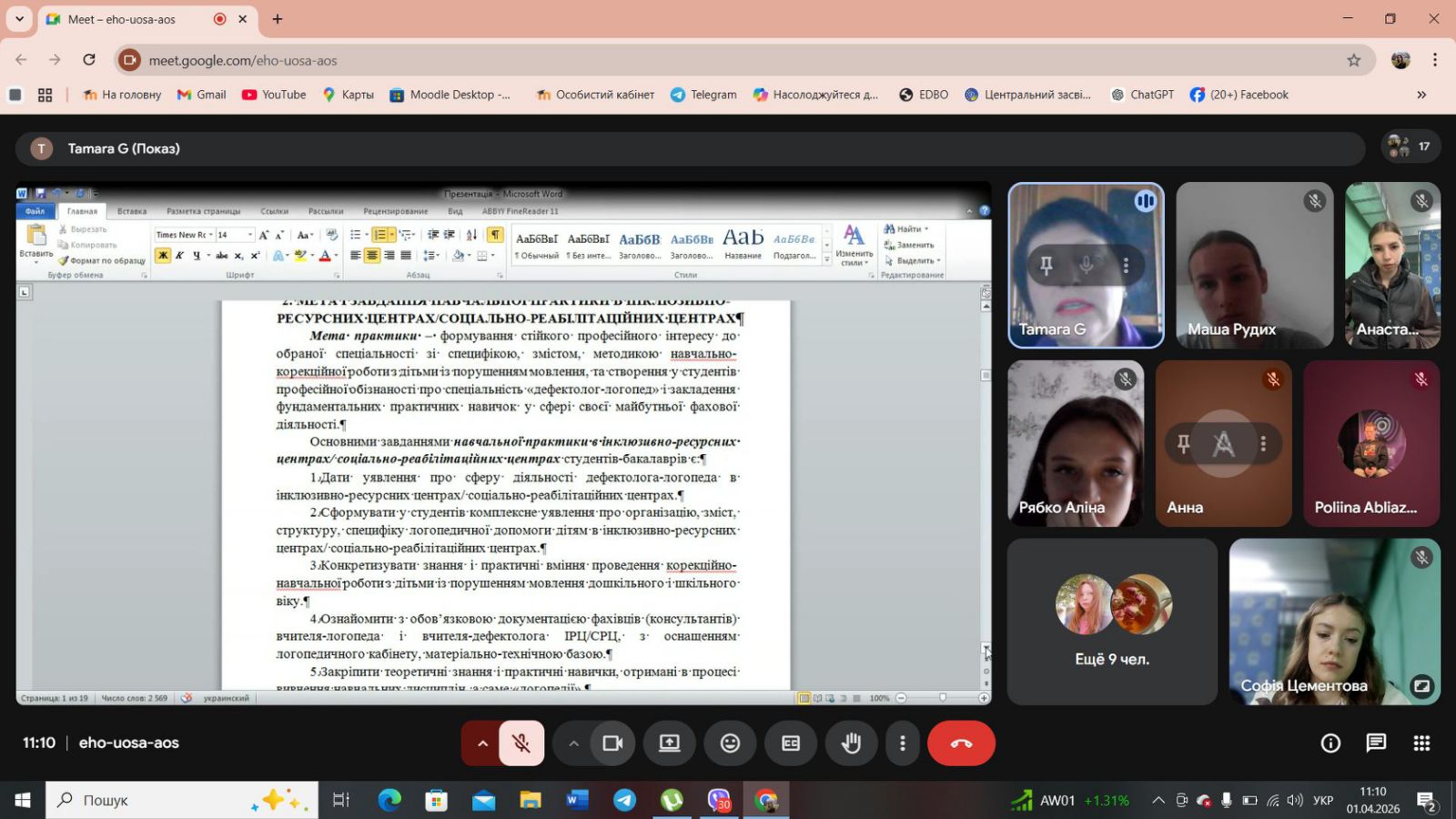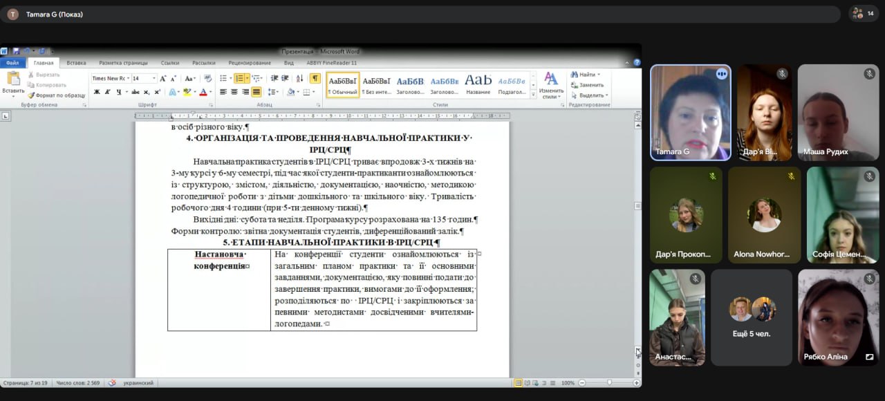 1 квітня 2026 р. на кафедрі логопедії відбулась настановча конференція з навчальної практики в інклюзивно-ресурсних центрах та соціально-реабілітаційних центрах для здобувачів першого (бакалаврського) рівня вищої освіти 937 групи спеціальності 016 Спеціальна освіта (016.01 Логопедія).