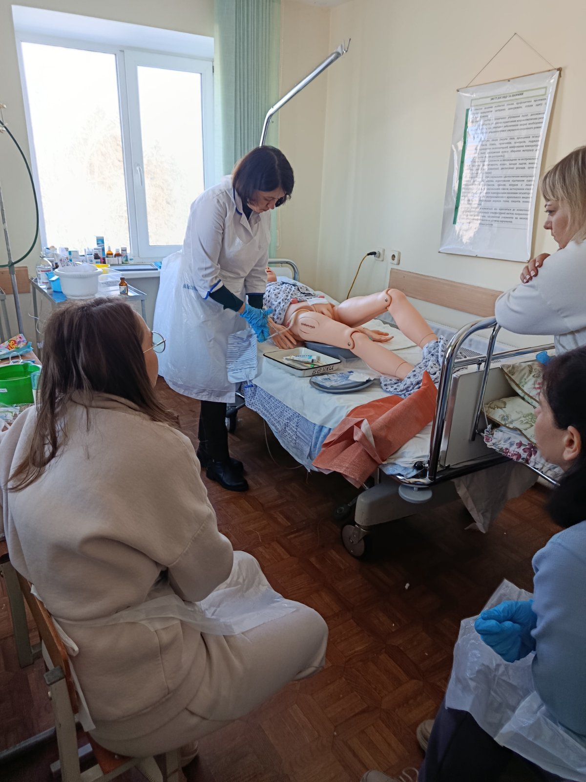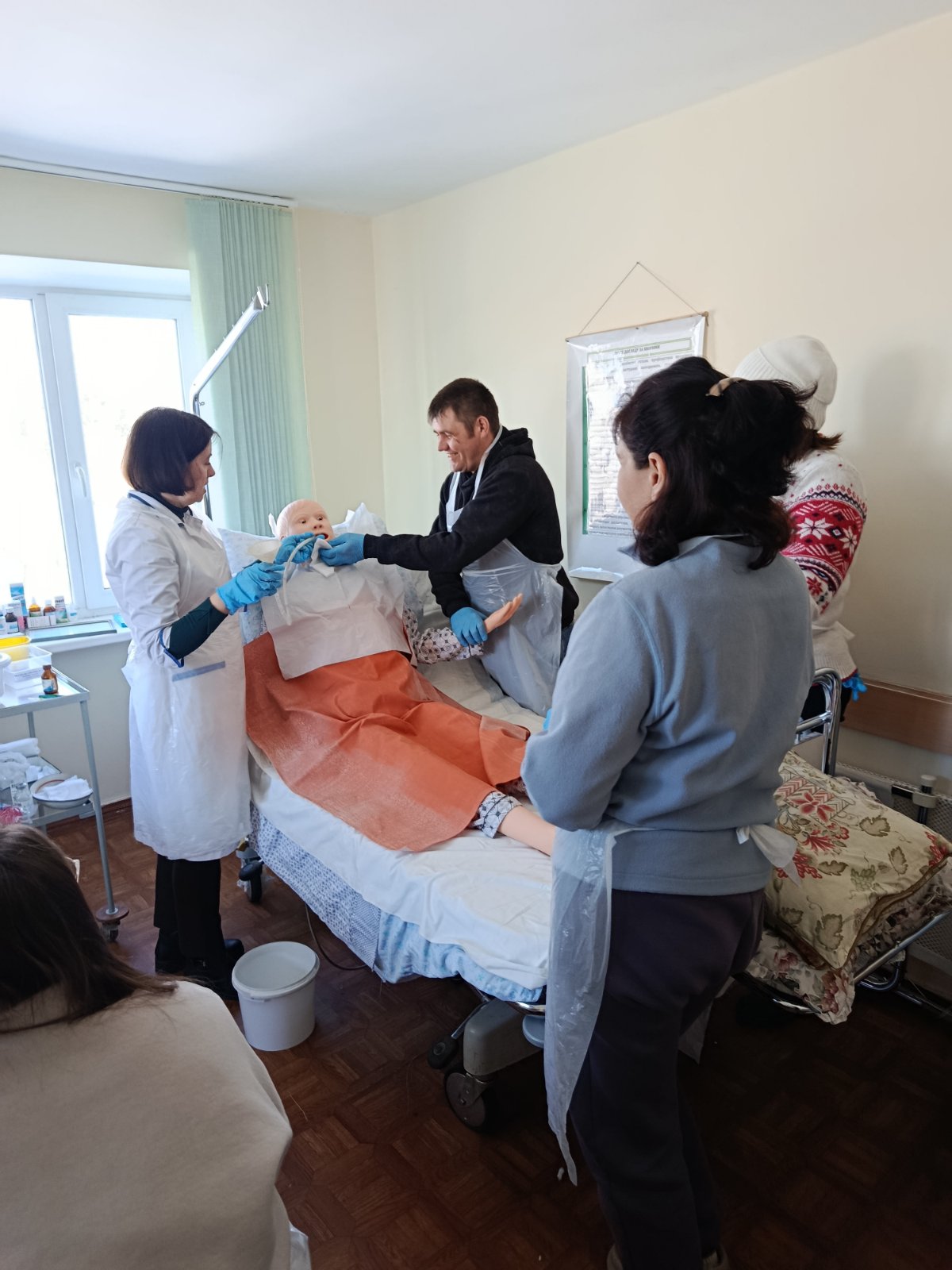 Основний фокус заняття був зосереджений на допомозі у виконанні зондових процедур та катетеризації сечового міхура. Учасники на практиці відпрацьовували алгоритми асистування при введенні шлункового зонда, а також особливості катетеризації чоловіків та жінок із використанням гумових катетерів та катетерів Фолея. Окрему увагу було приділено гігієнічним аспектам: звільненню дренажних мішків та ретельному догляду за промежиною пацієнтів із встановленими катетерами. Окрім технічних навичок, слухачі навчалися правильно організовувати робоче місце та дотримуватися вимог охорони праці, забезпечуючи при цьому максимальний комфорт і підтримку особистої гігієни пацієнта.