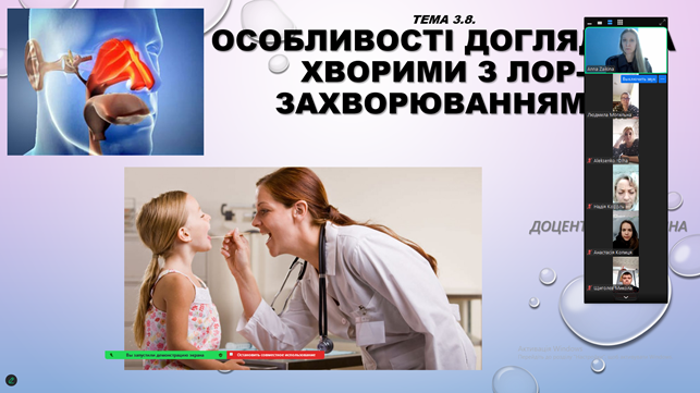 У межах вивчення навчальної дисципліни «Спеціальний догляд за хворими» під керівництвом першого проректора, доцента Г.Л. Заікіної було проведено заняття, присвячене специфіці роботи з пацієнтами, які мають ЛОР-патології. Слухачі програми «Асистент з догляду» детально розібрали алгоритми надання допомоги при гострих станах, зокрема при важких формах ангін та паратонзилярних абсцесах. Особлива увага приділялася моніторингу загального стану пацієнта, контролю дихання та особливостям організації харчування при вираженому больовому синдромі.