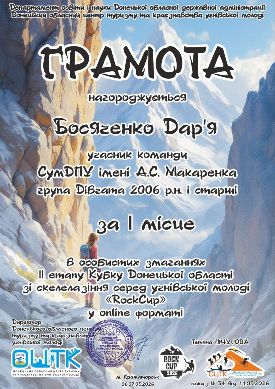 6–7 березня 2026 року відбувся ІІ етап Кубку Донецької області зі спортивного скелелазіння у дистанційному форматі RockCap.