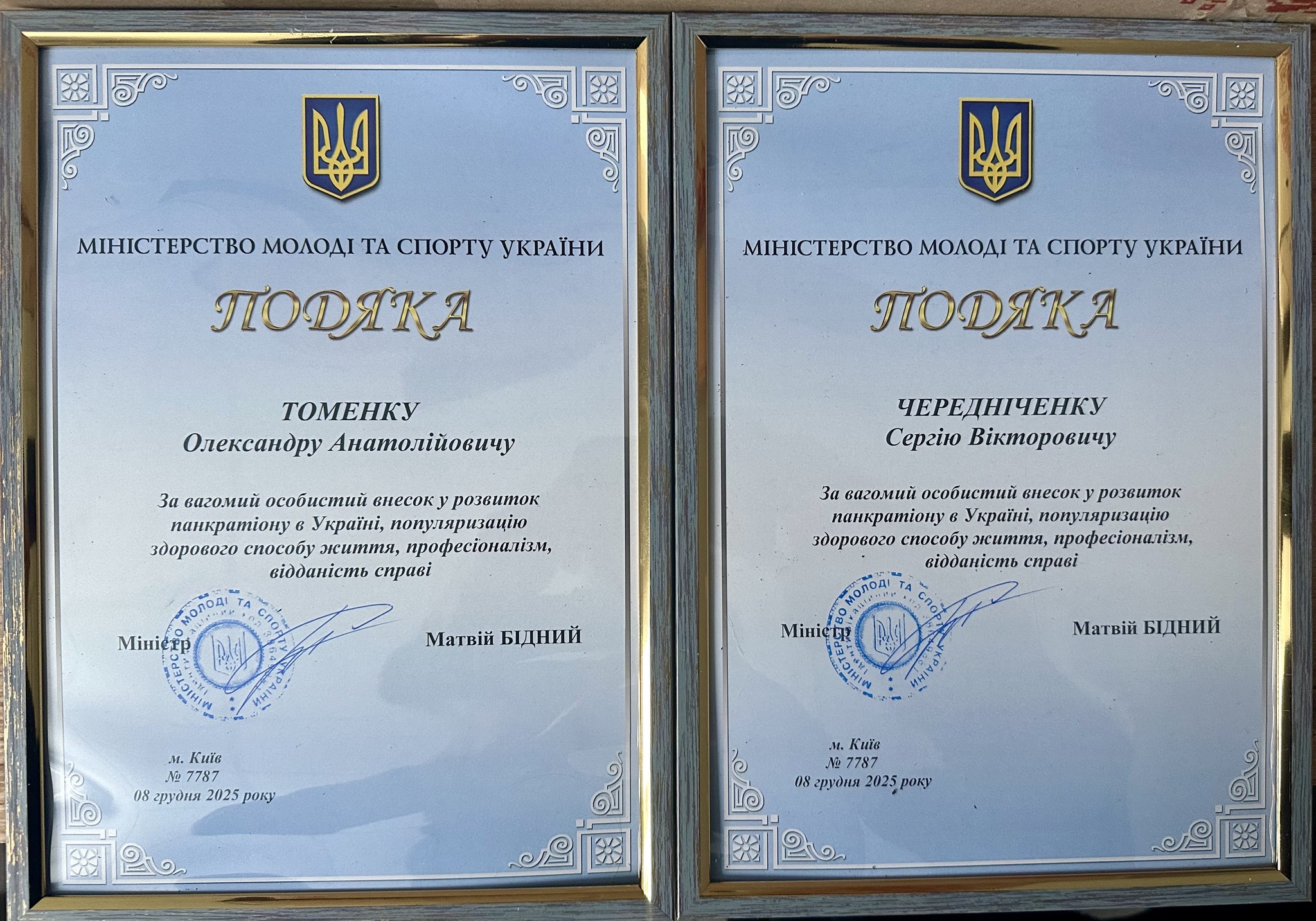 За вагомий особистий внесок у розвиток панкратіону в Україні, популяризацію здорового способу життя, високий професіоналізм і відданість справі відзначені: