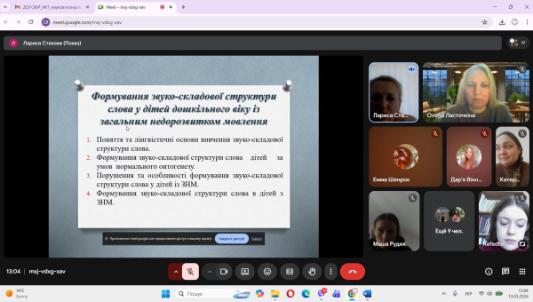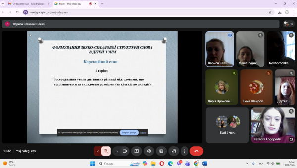 Відкрите лекційне з навчальної дисципліни «Логопедія» за темою «Формування звуко-складової структури слова» для студентів 937 групи